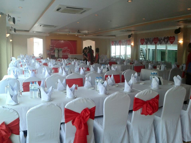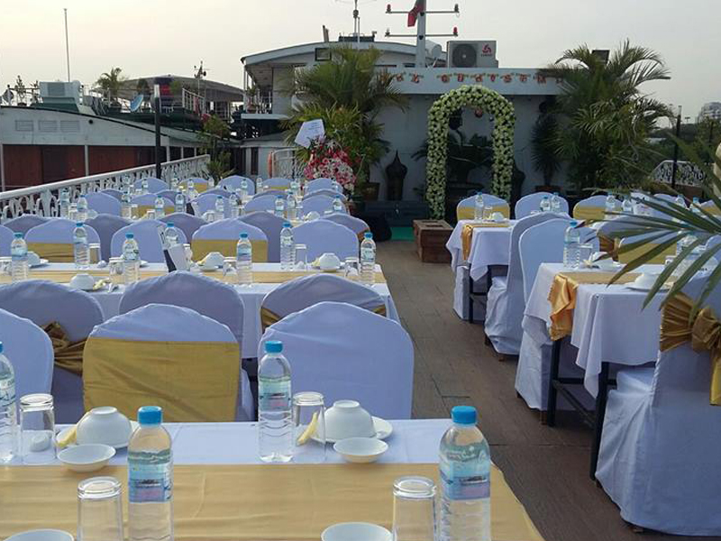 We just brought a lovely inglenook for you with your family, your love one, and your wonderful friends to have a fully leisure, free worry zone alone with you. The Boat has two decks. The Reception Hall with 125 pax seated capacity is on main deck, sheltered for wind & rain in case there will be.
