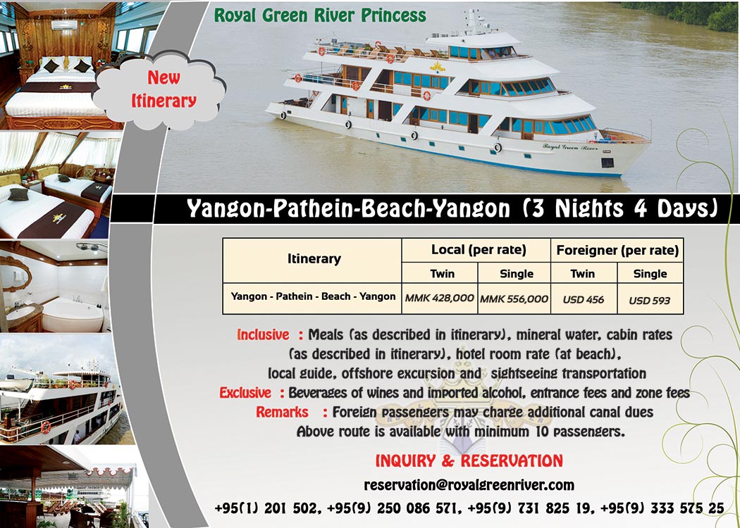 Royal Green River Team No.70/72, Room 305, 4th Floor, Botahtaung Zay Street, Botahtaung Township, Yangon, Myanmar. Phone: + 95-1 201 502,+ 95-9 333 57525, + 95-9 250086571 Email: [email protected]